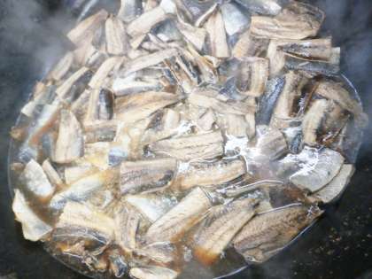 にしんなすは,干したにしんを朝9時前からじっくり煮て骨までやわらかくおいしく仕上がりました。また,その煮汁でなすを煮ました。あぶらの多いにしんとなすは,よく合います。