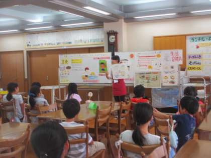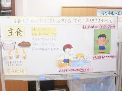 5年3組がランチルームで食の学習を行いました。テーマは「主食をしっかりとることの大切さを知ろう」です。