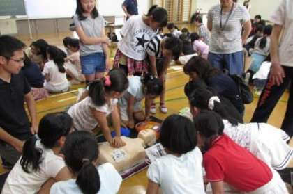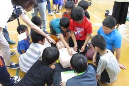 PTAの皆様に企画していただき,5年生がPTA学年行事「救命入門コース」を行いました。上京消防署の方に心肺蘇生法やAEDの使い方などを教えていただきました。保護者のみなさんと子どもたちが,人形や訓練用のAEDを使って心肺蘇生法を知ることができました。ありがとうございました。