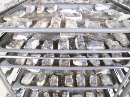 ほきのムニエルは,スチームコンベクションオーブンを使用して,焼きました。外はカリッと中は身が柔らかくふっくらと仕上がりました。手づくりのトマトソースが大好評でもっとソースがほしいという声が多くありました。