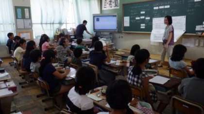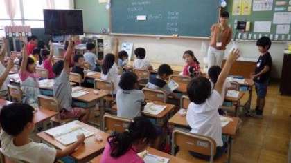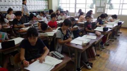 1年2組は計算カードを使って学習しています。5年1組は,音楽の鑑賞の学習をしています。5年3組は,スチューデントシティ学習に向けて,希望する仕事について考えています。