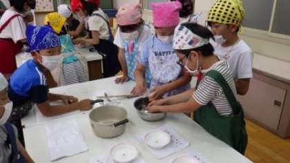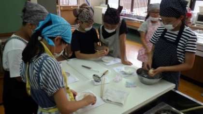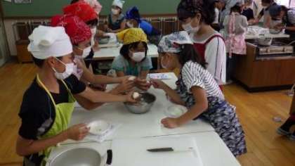 5・6時間目は,5年草の芽学級と5年2組が調理実習をしています。