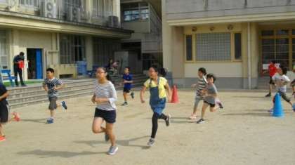 6年生が朝マラソンに挑戦しています。