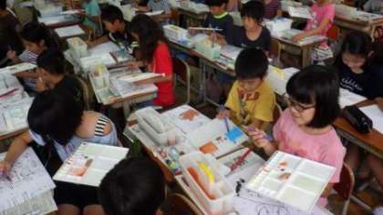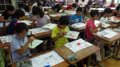 みさきの家野外活動での思い出を,和紙に絵で表しています。