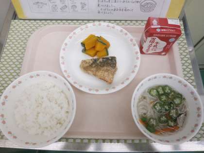 「かぼちゃのにつけがあまくておいしかったです。さばのたつたあげもごはんに合っておいしかったです。」(5年児童)