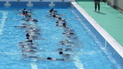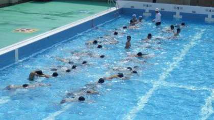 「くらげ」や「スーパーマン」など,いろいろなうき方の練習をしています。