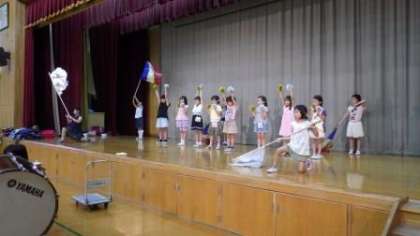 明日の発表に向けて,リハーサルを行いました。今年度初めての発表となります。フラッグなども使う予定です。