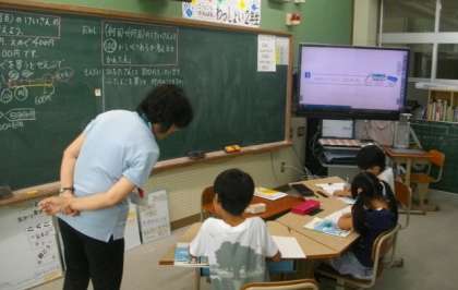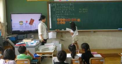 2年生は,算数の学習をしています。どのようにしたら,問題が解けるのか,ノートに自分なりの方法で考え方をかく時間を大切にしています。そのあと,考え方を交流して行きます。6年生は話し合いをしています。