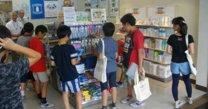 生き方探究館の3階には,新聞社,銀行,商店,区役所等からなる実際の「街」が再現されています。その「街」で,子どもたちは学校での事前学習を基に,消費者役と企業に勤める会社員役,それぞれの立場での役割を担い,体験学習を通して,社会の働きや経済の仕組み,社会と自分との関わりなどを学びます。