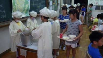 「きょうのジャーマンポテトがおいしすぎて,ふやしました。また,おいしく,あいじょうをこめてつくって下さい。」(2年児童)