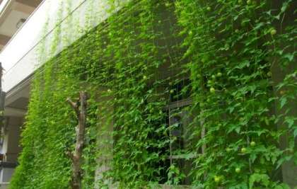 校門をはいってすぐ左のところに,緑のカーテンを育てています。