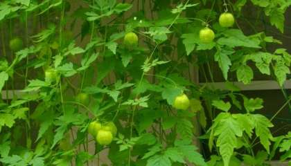 つる性の一年草でまきひげを出し,ぐんぐん伸びて3mほどの長さになります。