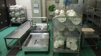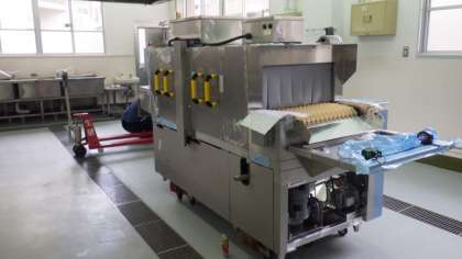本校では夏休み終了後,これまで使っていた陶器の食器からPEN(ペン)食器に変更をします。夏休み中に,食器や機械などの整備をしています。