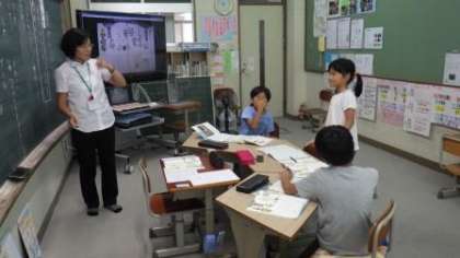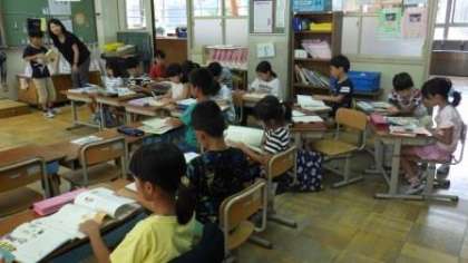 2年生は,新しい教科書を渡しています。2年草の芽学級は国語の学習で夏を感じる言葉をさがしています。4年草の芽学級は算数の学習をしています。