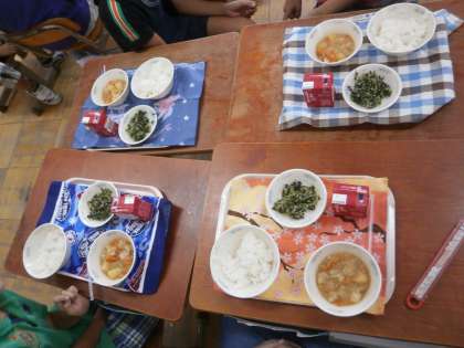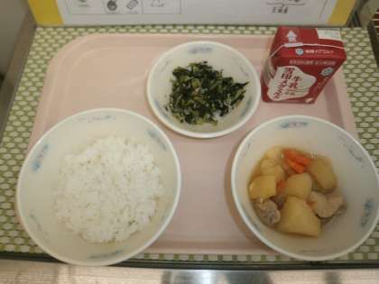 「わたしは,今日の給食で鶏肉と野菜のにつけのじゃがいもにとくに味がしみこんでいておいしかったです。」(5年児童)