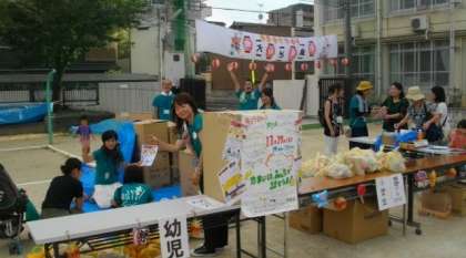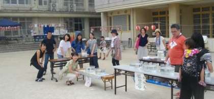 4時30分からPTA企画の夏祭りが始まります。早くから役員の方々に準備をすすめていただきました。笑い声のたえない,にぎやかな雰囲気で,子どもたちもわくわくしながら見守っています。その後は,地域の各種団体の方々の協力で,盆踊り大会が開催されます。