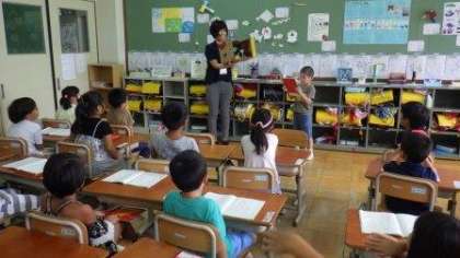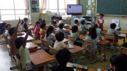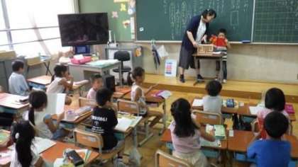 夏休みにつくった作品について発表しています。質問もたくさんできました。