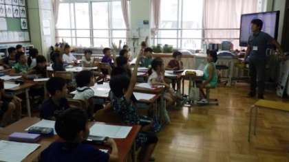 3年生は社会で買い物についての話をしています。5年生は算数で公倍数についての学習をしています。