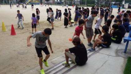 今日の朝マラソンは,反復横とびや階段昇降などのトレーニングをしました。
