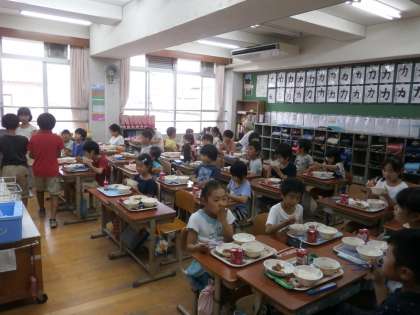 村田さんと3−1の教室で一緒に給食をいただきました。