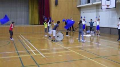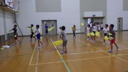 中間休みに,応援担当の4・5・6年生が体育館で応援の練習をしています。