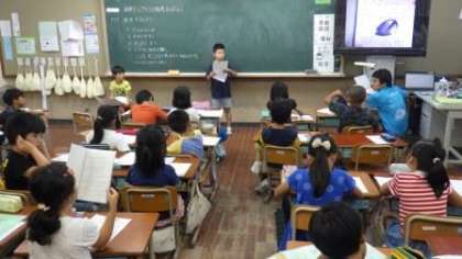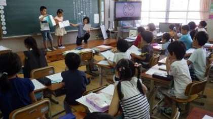 夏休みにがんばった自由研究や作品などを発表しています。