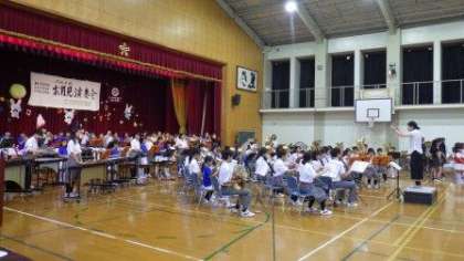 地域の方が主催で,二条中学校・朱雀高校・二条城北小学校の三校合同お月見コンサートを行ってくださいました。「花は咲く」の合同演奏と歌で始まりました。