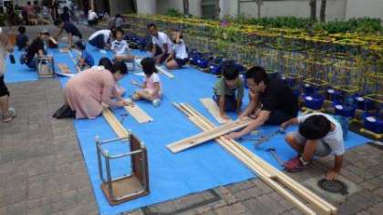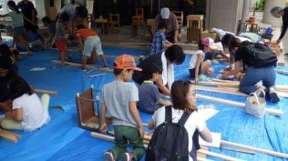 京都府建築工業協同組合「葭塾」の方々を講師にお招きし,親子木工教室を行っています。どんな作品ができあがるか,楽しみです。