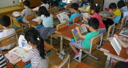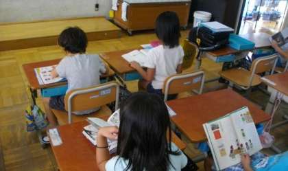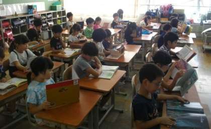 8時35分のベルがなったときには,1,2年生は席について,静かに本を読んでいます。3Fの高学年がよい見本を示してくれていることもあり,よいスタートをきることができています。