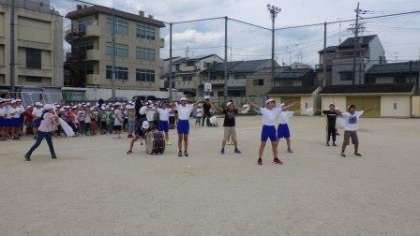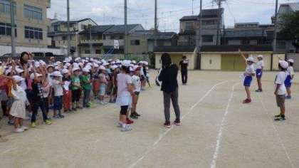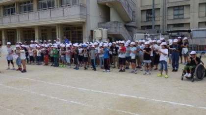 今日の運動会フリータイムで,白組は運動場で応援合戦とエール交換の練習をしました。