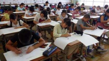 物語から想像を広げ,アイデアスケッチや下絵を描いています。
