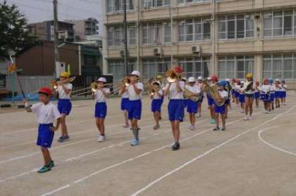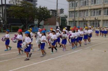 1・2時間目に運動会の全校練習をしました。入場行進や開閉会式,全校種目の玉入れとリレーの練習などをしました。