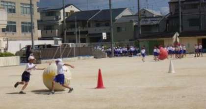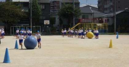 団体競技「大玉送り」の練習をしています。
