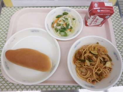 イタリアンスパゲティには,ピーマンとズッキーニを使用しました。1年生では,初めてズッキーニを食べた児童もいました。おいしいと大好評でした。