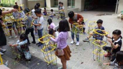 一人一鉢で育ててきたアサガオのつるを使って,リースをつくっています。