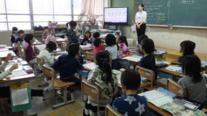 かけ算の考え方について,たくさんの子どもたちが自分の考えを発表しています。