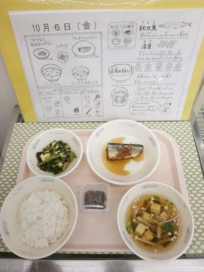 「今日の給食で一番だったのは,さんまのしょうがにです。ごはんに合って,ごはんがすすみました。ごはんがすすんだおかずといえば,しばづけもおいしかったです。」(6年児童)