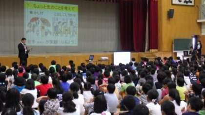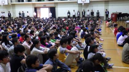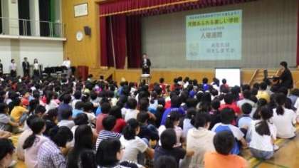 本校では,「人権週間」として,今週,いろいろな取組を行います。今日は,人権集会を行いました。はじめに,校長先生から人権についての話を聞きました。