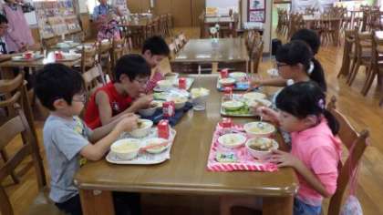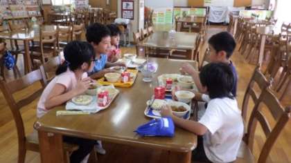 今日は,草の芽学級がランチルームで楽しく給食を食べています。