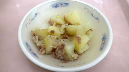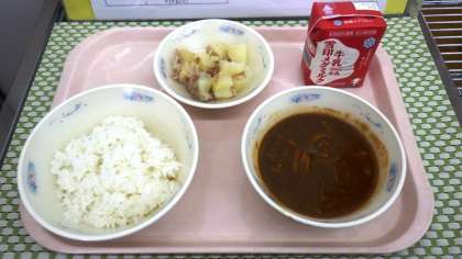今日の給食の「ジャーマンポテト」は,ホクホクしたじゃがいもとベーコンのうま味を味わいましょう。