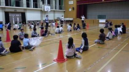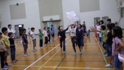 来週本校で行う上京支部育成学級・支援学校合流運動会で,4年生は「キラキラ流れ星リレー」に参加します。今日は,みんなで練習をしました。