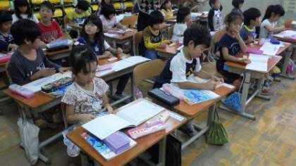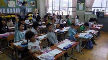 算数の学習をしています。数図ブロックを使って考えたり,自分の考えを発表したりしています。