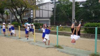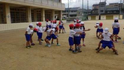 学級ごとに,「まねっこあそび」「すもうあそび」「てつぼうあそび」を楽しんでいます。