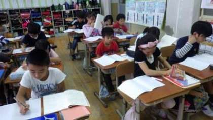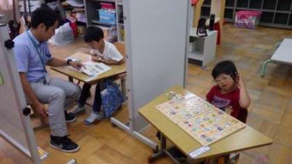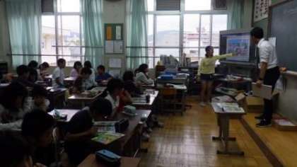5年生は外国語活動でアルファベットの学習をしています。1年わかたけ学級は国語や算数の学習をしています。3年生は国語でローマ字の学習をしています。