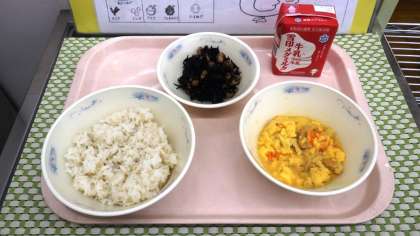 「ひじきまめとあげたまにの,くみあわせがよかったです。」(3年児童)