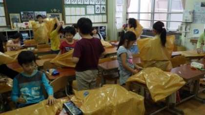 来週の上京支部育成学級・支援学校合同運動会に向けて,衣装やお面をつくっています。