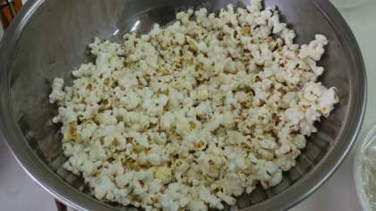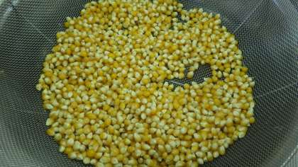 いももちが焼けるのを待つ間に,収穫したコーンを使ってポップコーンも作りました。