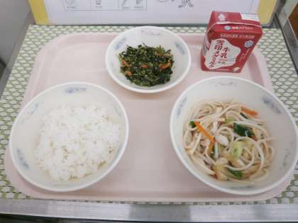 「今日の給食の中でかやくうどんがおいしかったです。野菜がたくさん入っていたので,おいしく食べられました。また作ってください。」(6年児童)