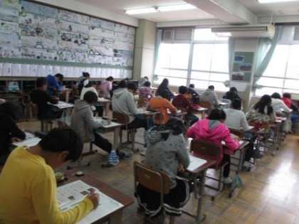 2時間目に5・6年生が,ジュニア京都検定にチャレンジしました。基礎コース・発展コースの問題に一生懸命取り組んでいました。