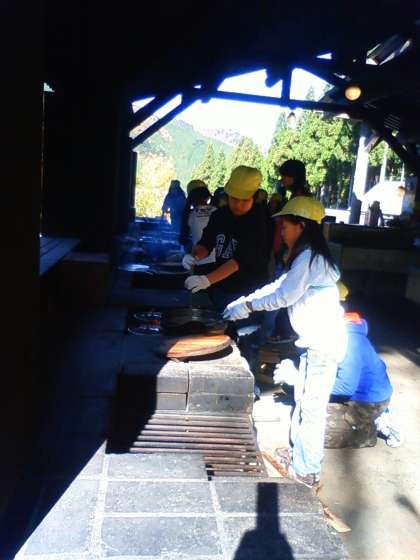 かまど係りは,1日目の豚汁作りでも経験したので薪の燃やし方も上手になっています。
